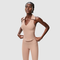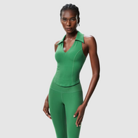 Bu iki parçalı nervürlü spor giyim seti, hem antrenmanlar hem de günlük kullanım için şık ve çok yönlü bir çözüm sunar. Yakalı üst ve yüksek belli tayttan oluşan özel tasarım, şıklığı işlevsellikle bir araya getirerek yoga, pilates veya şık bir spor şıklığı için mükemmel bir seçimdir.