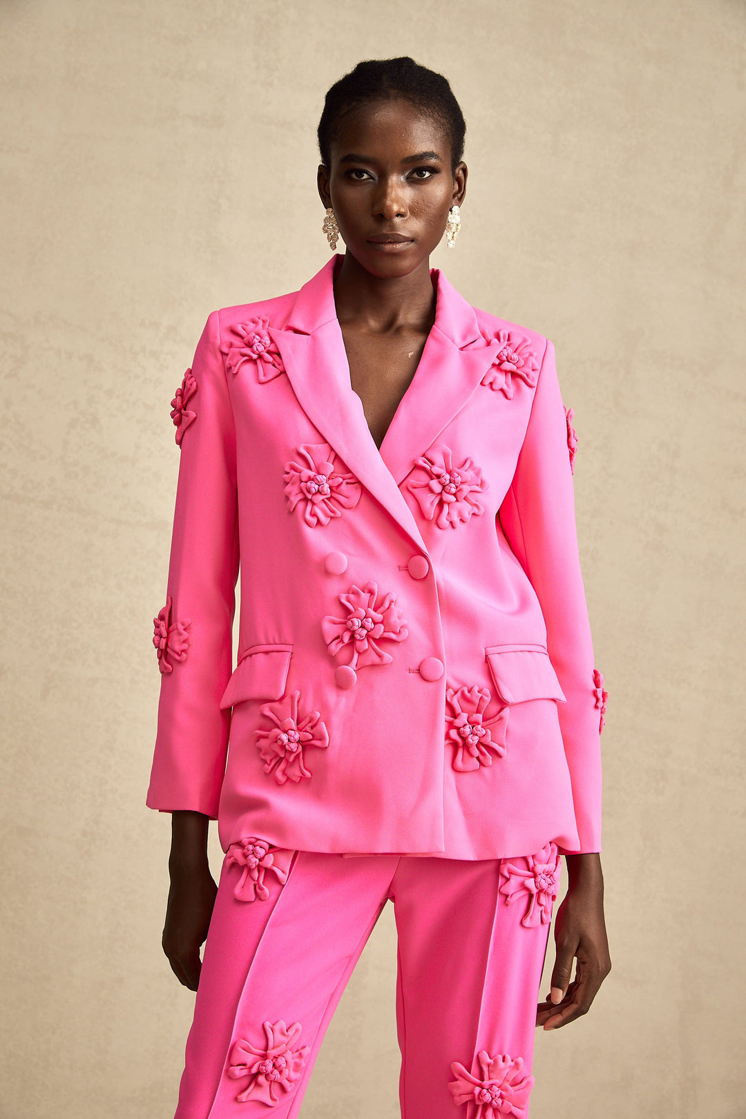Amélie-Rose Pembe Çiçekli Ceket Ve Pantolon Uyumlu Takım