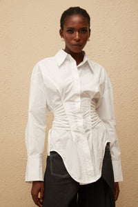 Bérénice Beyaz Kavisli Dantel Detaylı Gömlek