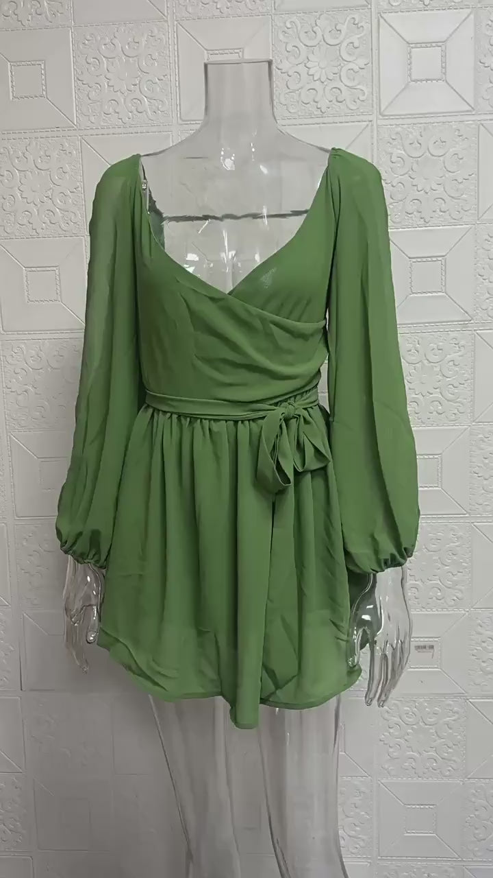 Uzun Kol Detaylı Volanlı Mini Elbise